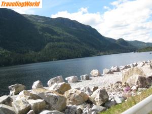 Am nächsten Morgen (8. August 2013) fahren wir weiter nach Geiranger. Wir passieren schöne Wasserfälle in Gudbrandsjuvet, wo man einen schönen Rundgang machen kann. Der nächste Stopp ist eine kurze Fähre von Valldal nach Eidsdal und danach kommen wir an einem wunderschönen Aussichtspunkt. Dieser Fjord steht unter Wetkulturerbe und das nicht ohne Grund, er ist wirklich ganz toll und alle Kreuzfahrtschiffe und die Hurtigruten legen hier an. Es ist schade, dass wir nicht mehr Zeit haben, denn hier kann man hinter einem Wasserfall wandern, doch der Weg dort hin dauert 1,5 Stunden (die wir mal wieder nicht haben). Wir fahren 100 km nach Olden und kommen in Oldencamping um 19:30 Uhr an. Er liegt direkt am Nordfjord und ist sehr idyllisch. Man kann kostenlos Boot fahren oder sogar schwimmen. Bei uns hat es leider geregnet so konnten wir beides nicht machen.