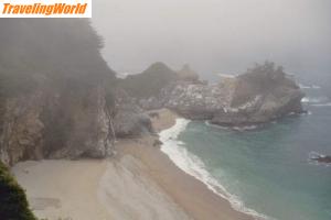 Das Wetter ist hier richtig zwei geteilt. Bei Leggett schien noch die Sonne, aber sobald wir über die Hügel zum Meer kamen, war es bewölkt und ziemlich kalt. Man sah teilweise am Rand der Berge den blauen Himmel dahinter, aber am Highway war’s dauernd grau. Deshalb freuten wir uns, dass an diesem Tag noch die Sonne hervor kam.