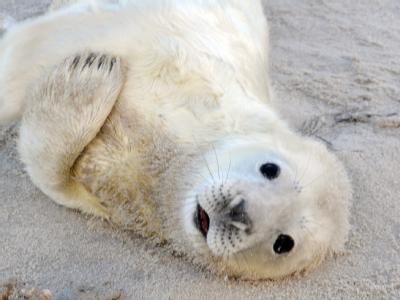 Runde Knopfaugen, die den Betrachter neugierig angucken - Kegelrobbenbabys sind im Winter auf Helgoland die Attraktion schlechthin. (Bild: Tadday/dpa/tmn)