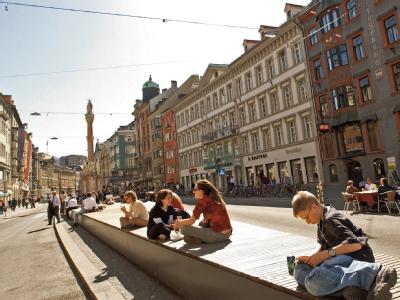 Über Maria-Theresien-Straße und umliegende Plätze und Gassen wird sich während der EM die Fanmeile erstrecken. (Bild: Innsbruck Tourismus/dpa/tmn) Wer sowohl zur Bergiselschanze als auch zur Seegrube hinaufsehen will, geht in die Maria-Theresien-Straße. Über diese «Prachtstraße» und die umliegenden Gassen und Plätze wird sich zur EM die Fanmeile erstrecken. «Es wird zum Beispiel einen Platz mit Beachsoccer und Strandbar geben und auch Spielmöglichkeiten für Kinder», sagt Platzgummer. An die Maria-Theresien- schließt sich die Friedrich-Straße an. Sie endet beim Wahrzeichen der Stadt, dem Goldenen Dachl.